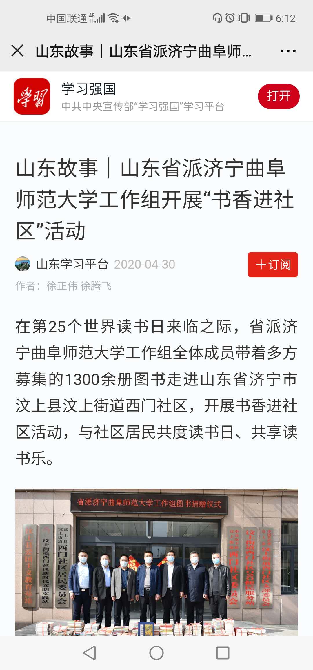 学习强国:山东省派济宁LD平台_LD(中国)一站式服务官网工作组开展“书香进社区”活动