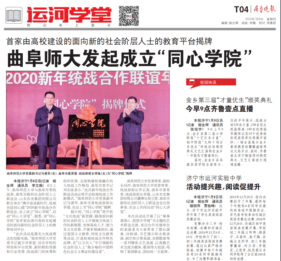 齐鲁晚报:曲阜师大发起成立“同心学院”