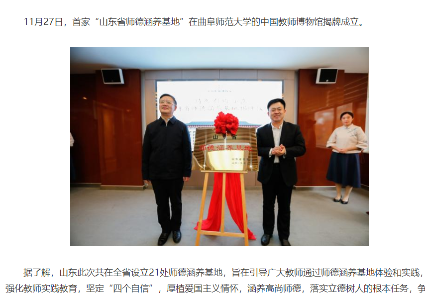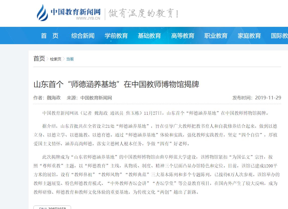 中国教育报:山东首个“师德涵养基地”在中国教师博物馆揭牌