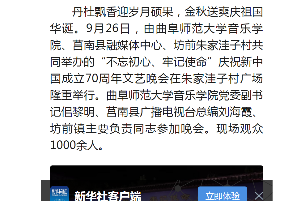 新华网:曲师大省派第一书记驻村举办庆祝新中国成立70周年文艺晚会