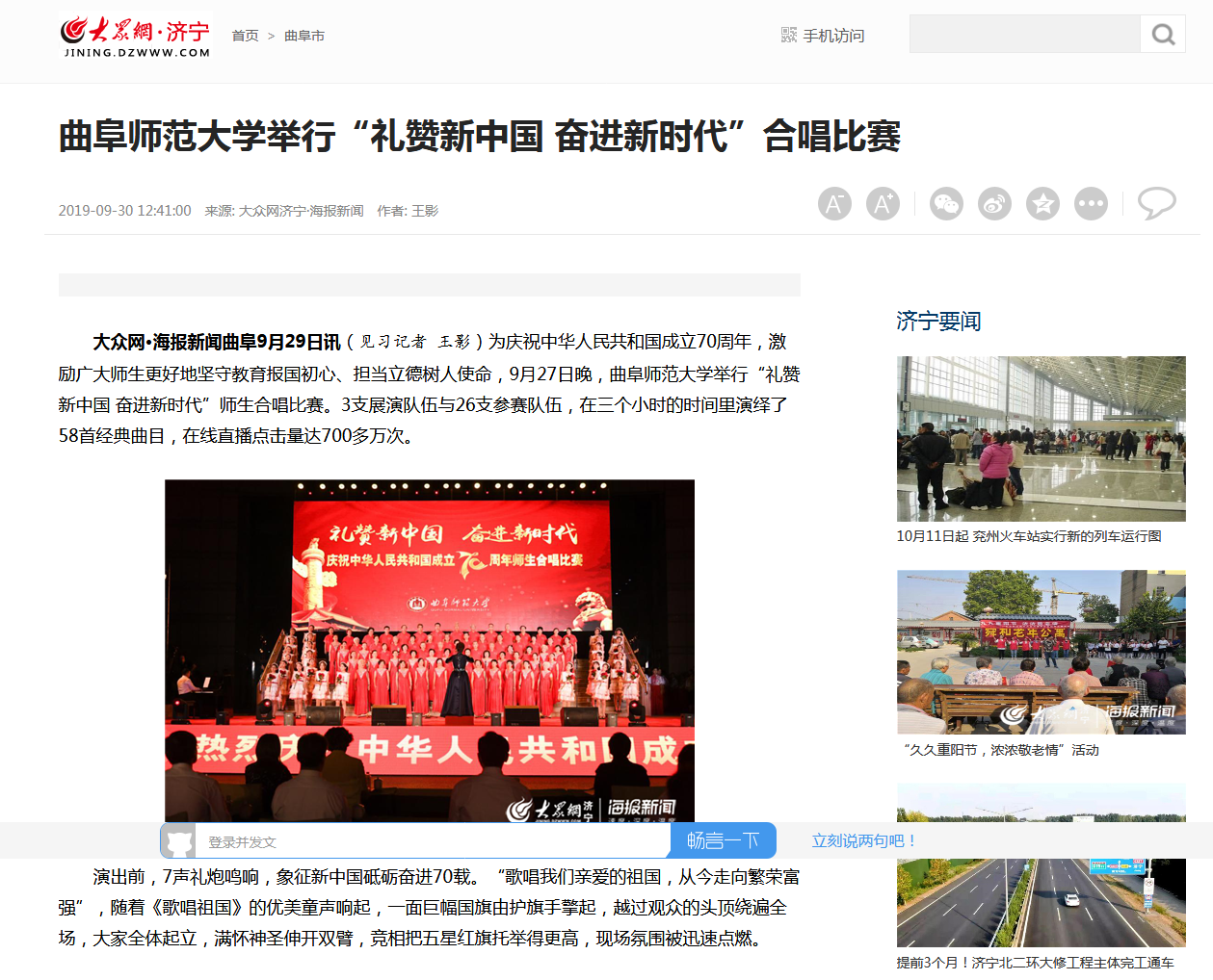 大众网:LD平台_LD(中国)一站式服务官网举行“礼赞新中国 奋进新时代”合唱比赛