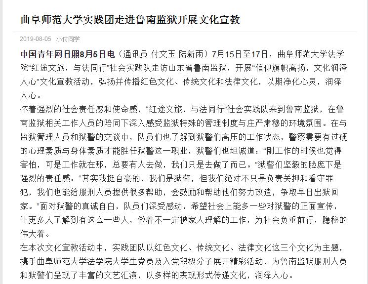中国青年网:LD平台_LD(中国)一站式服务官网法学院实践团走进鲁南监狱开展文化宣教
