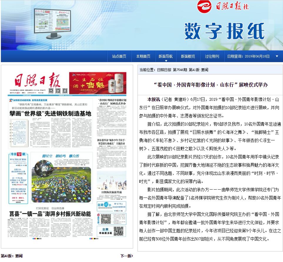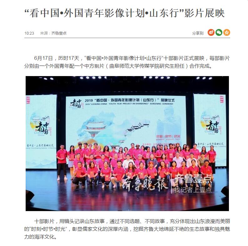 多家媒体关注“看中国•外国青年影像计划•山东行”活动