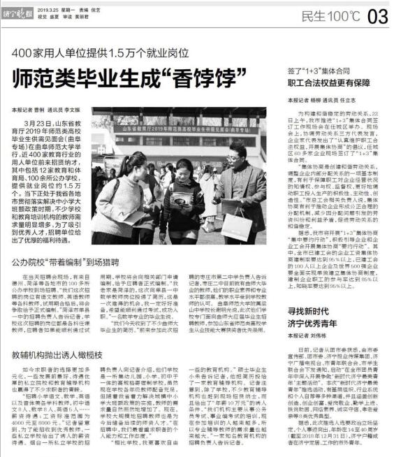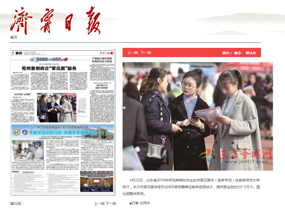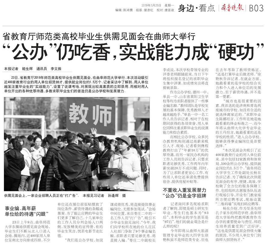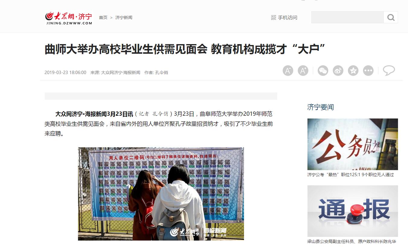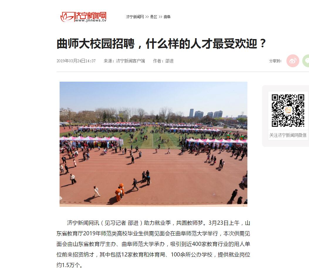 媒体关注我校举办山东省教育厅2019年师范类高校毕业生供需见面会