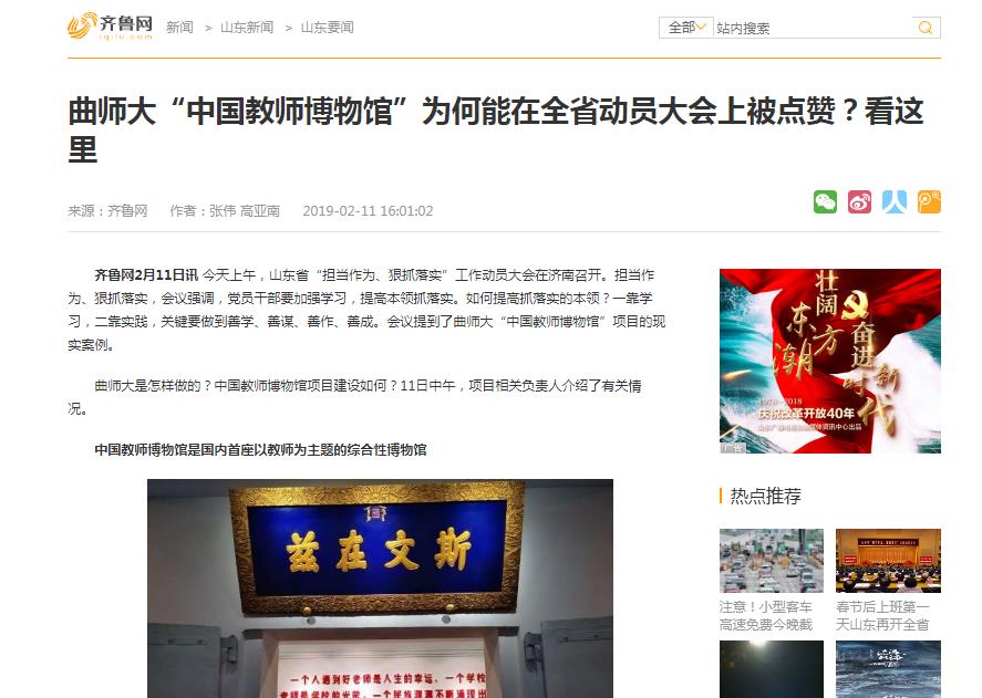 齐鲁网:曲师大“中国教师博物馆”为何能在全省动员大会上被点赞?