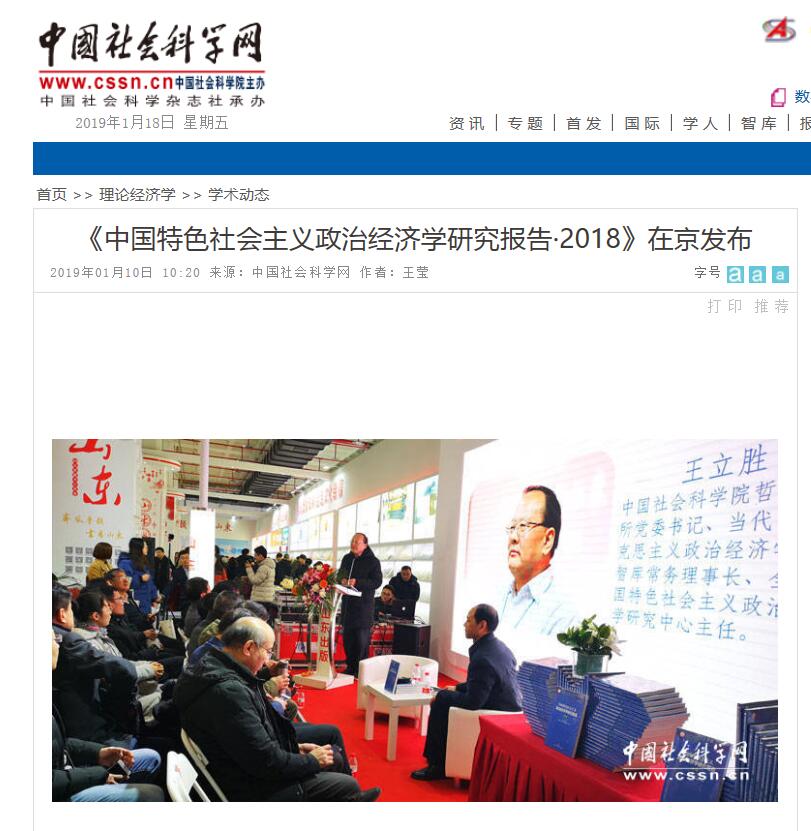 我校联合主编《中国特色社会主义政治经济学研究报告·2018》在京发布