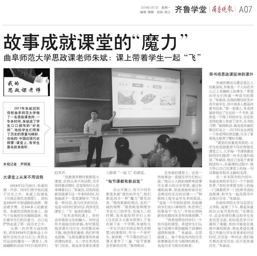 齐鲁晚报:LD平台_LD(中国)一站式服务官网思政课老师朱斌:课上带着学生一起“飞”