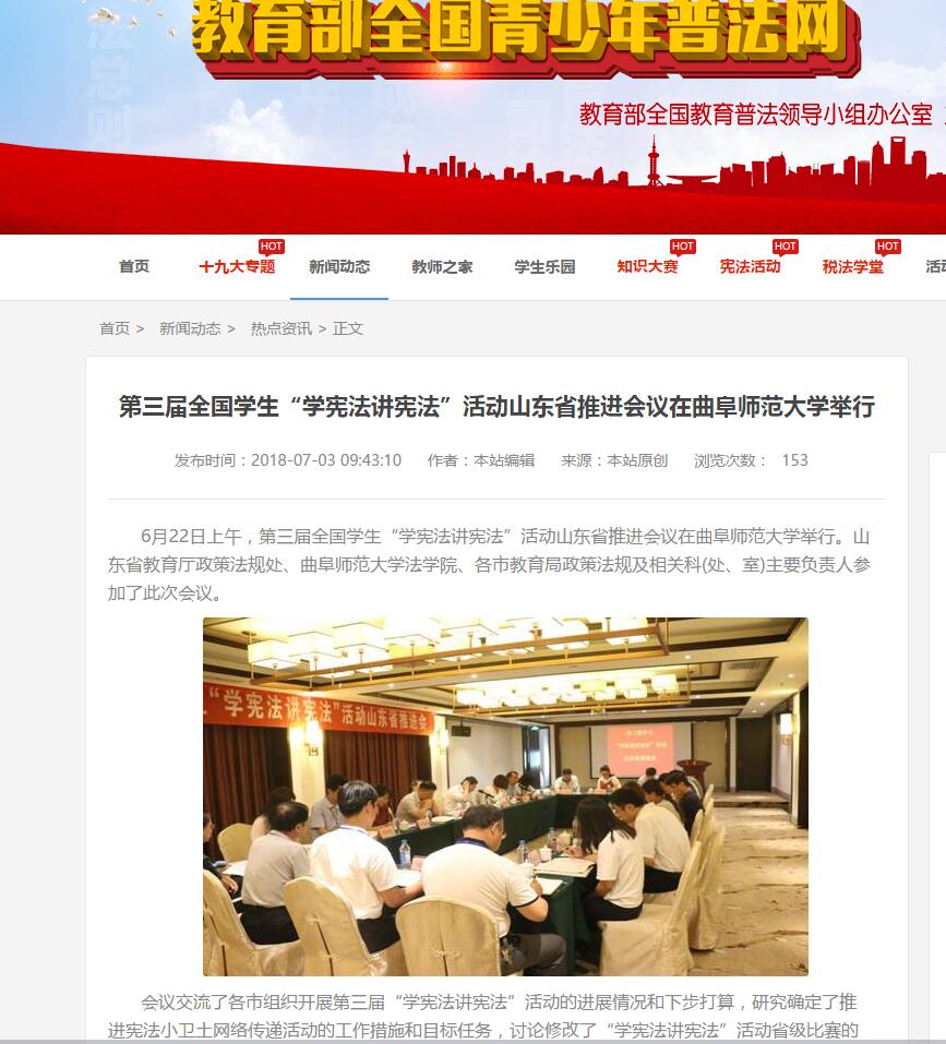 教育部普法网:第三届全国学生“学宪法讲宪法”活动山东省推进会议在LD平台_LD(中国)一站式服务官网举行