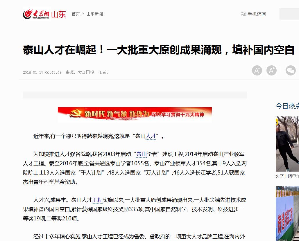 大众网:泰山人才在崛起!一大批重大原创成果涌现,填补国内空白