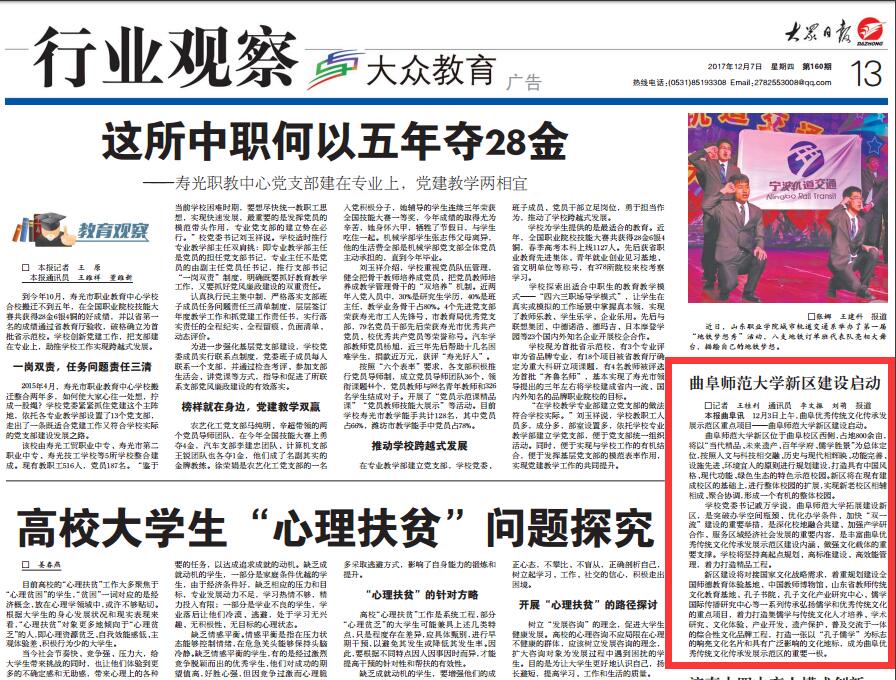 大众日报等媒体关注我校新区建设启动座谈会