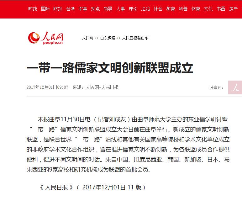 人民日报等媒体关注我校发起成立儒家文明创新联盟
