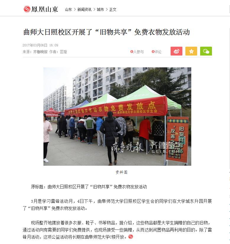 齐鲁晚报:曲师大日照校区开展“旧物共享”免费衣物发放活动