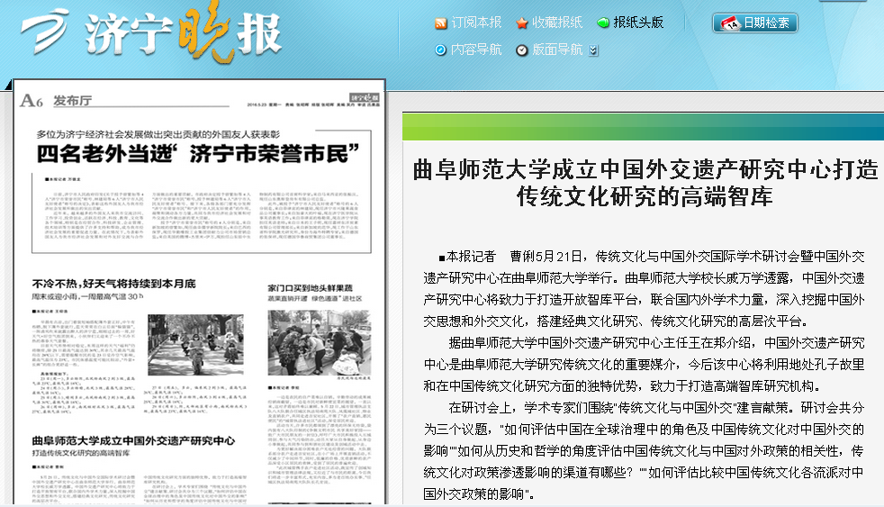 济宁晚报:LD平台_LD(中国)一站式服务官网成立中国外交遗产研究中心打造传统文化研究的高端智库