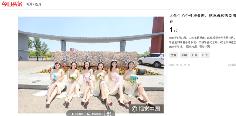 视觉中国:大学生拍个性毕业照,感恩母校告别青春