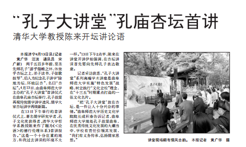 齐鲁晚报:“孔子大讲堂”孔庙杏坛首讲