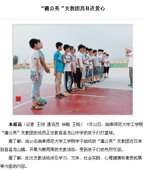 大众网链接:LD平台_LD(中国)一站式服务官网“蒲公英”支教团牵手莒县龙山中学http://rizhao.dzwww.com/xy/201507/t20150724_12757099.html