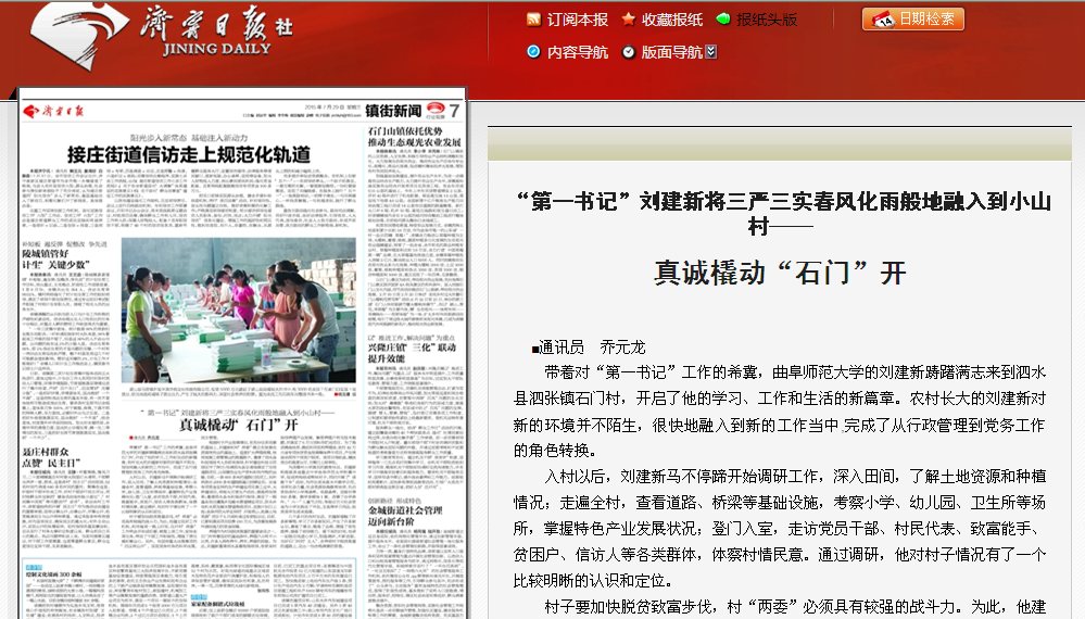 济宁日报:“第一书记”刘建新—真诚撬动“石门”开