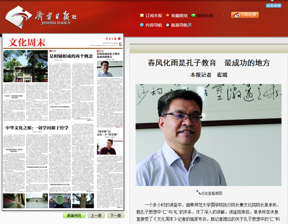 济宁日报:单承彬:春风化雨是孔子教育 最成功的地方