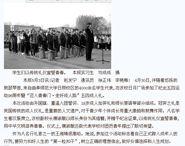 齐鲁晚报:传统礼仪扮靓“五四”成人礼