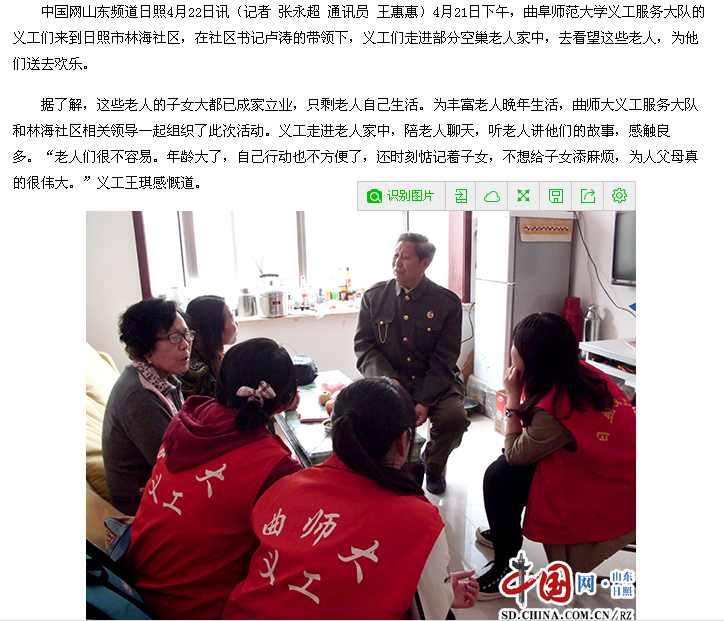 中国网:空的是巢 暖的是心——曲师义工探望林海社区空巢老人