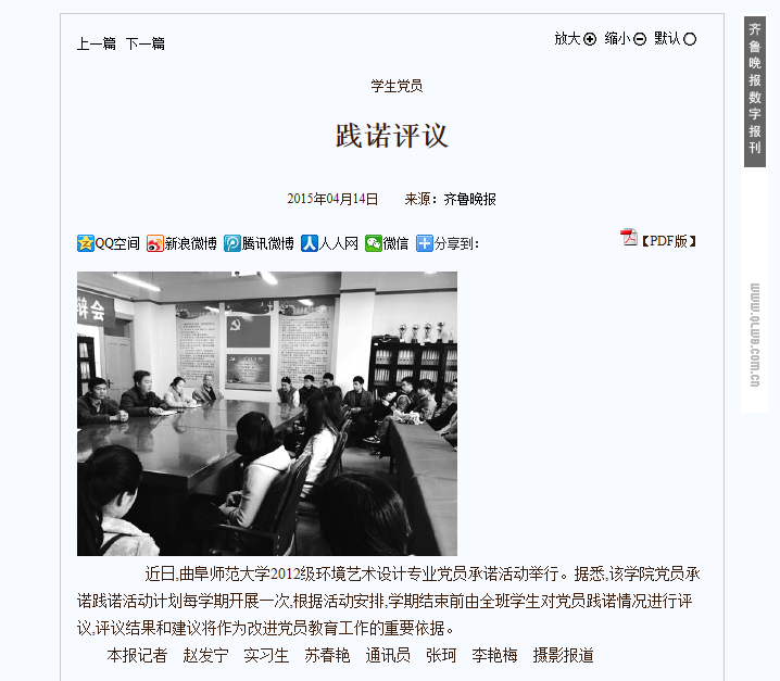 齐鲁晚报:美术学院学生党员践诺评议