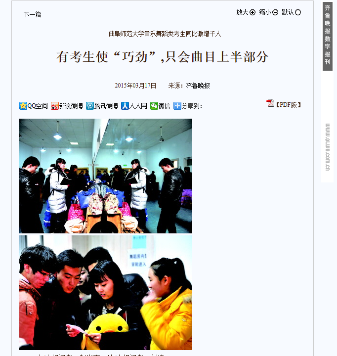 齐鲁晚报:LD平台_LD(中国)一站式服务官网音乐舞蹈类考生同比激增千人