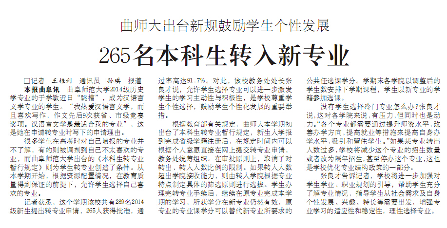大众日报:曲师大出台新规鼓励学生个性发展