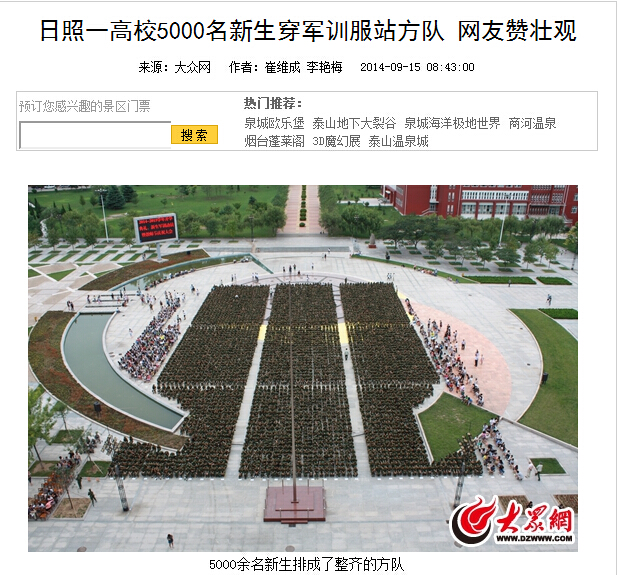 大众网:LD平台_LD(中国)一站式服务官网举行2014——2015学年开学典礼、新生军训动员大会