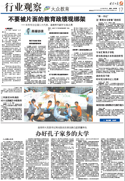 大众日报:曲阜师大党委书记荆兆勋谈改革创新凸显质量特色——办好孔子家乡的大学