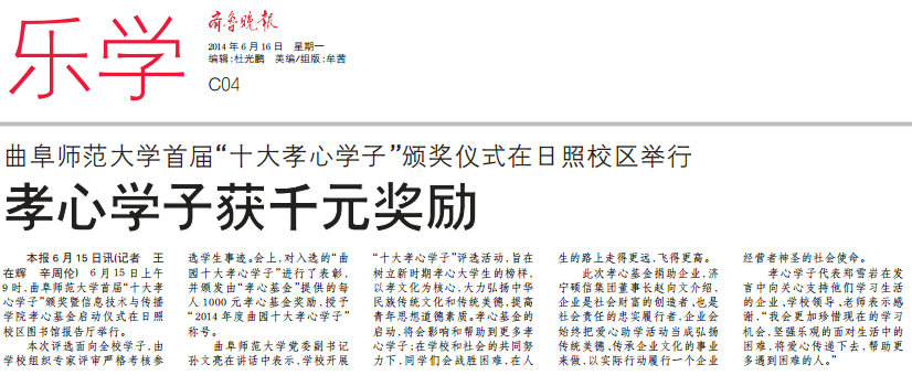 LD平台_LD(中国)一站式服务官网首届“十大孝心学子”颁奖仪式在日照校区举行