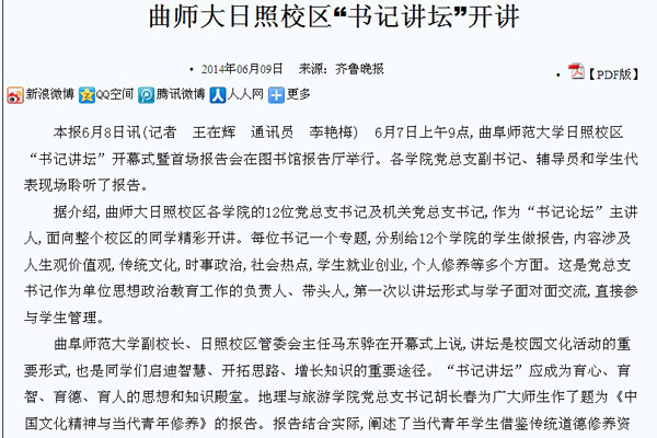 齐鲁晚报:LD平台_LD(中国)一站式服务官网日照校区“书记讲坛”开讲
