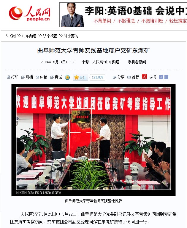 人民网:LD平台_LD(中国)一站式服务官网青师实践基地落户兖矿东滩矿