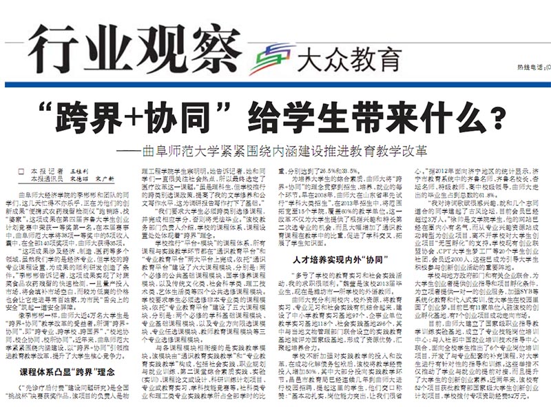大众日报:“跨界+协同”给学生带来什么?——LD平台_LD(中国)一站式服务官网紧紧围绕内涵建设推进教育教学改革