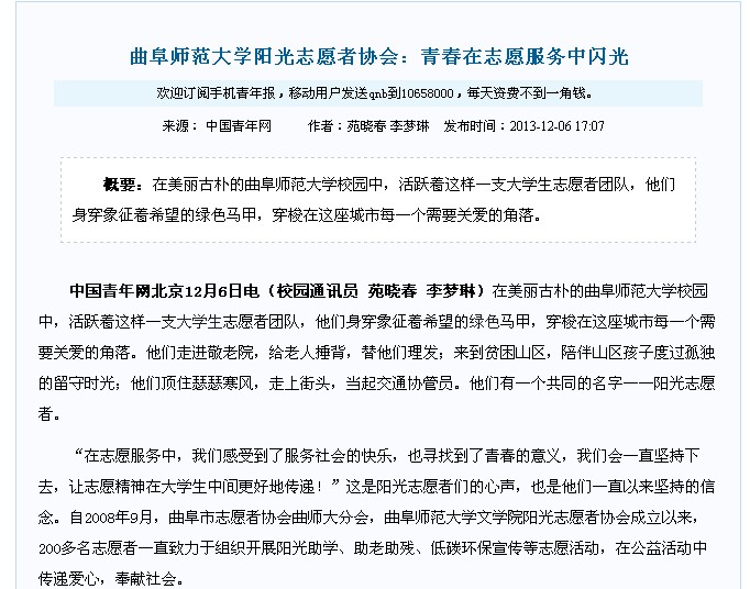 中国青年网:LD平台_LD(中国)一站式服务官网阳光志愿者协会:青春在志愿服务中闪光