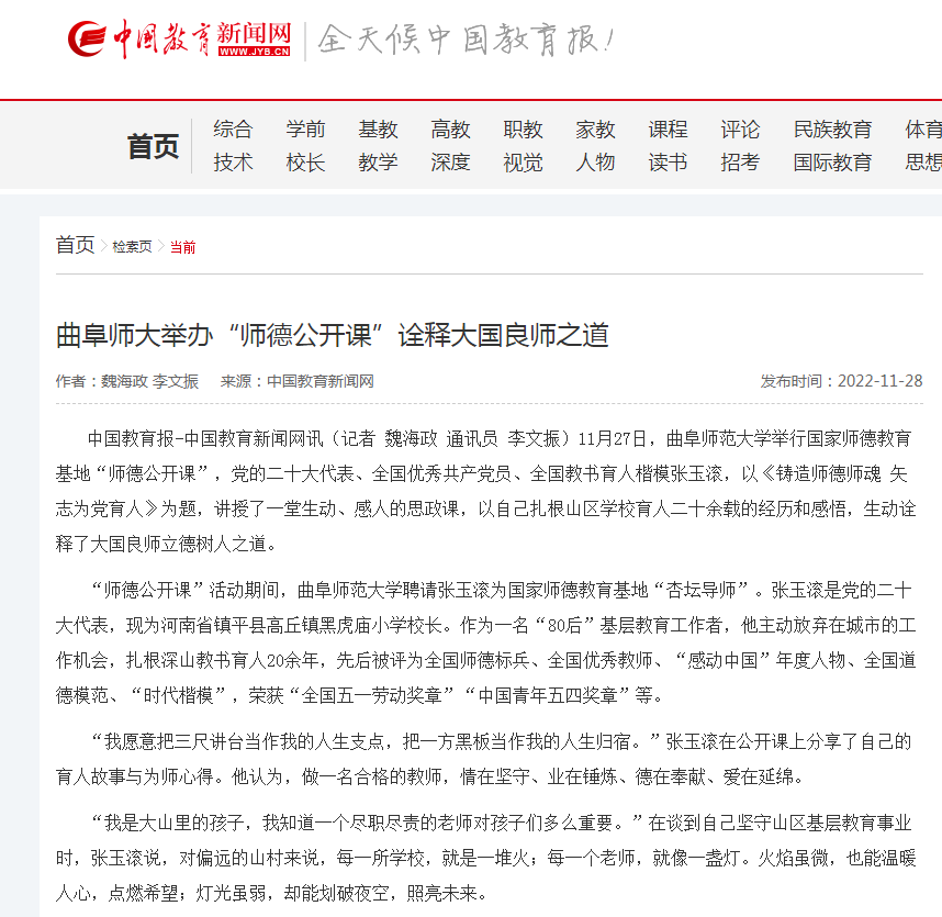【中国教育新闻网】曲阜师大举办“师德公开课”诠释大国良师之道