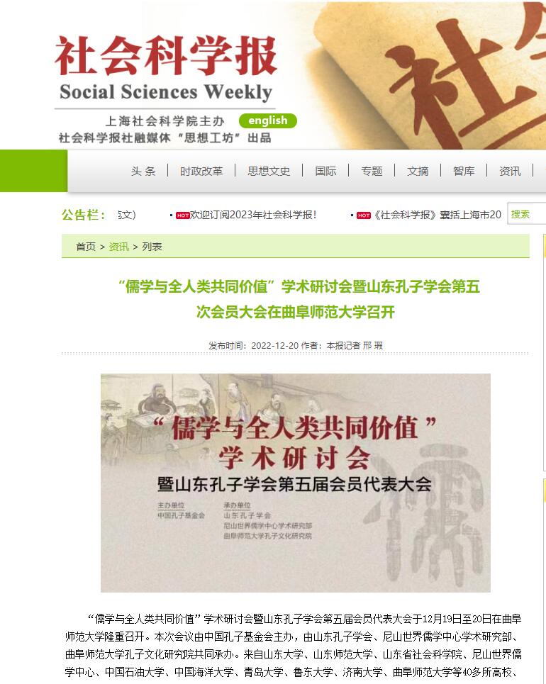 【社会科学报】“儒学与全人类共同价值”学术研讨会暨山东孔子学会第五次会员大会在LD平台_LD(中国)一站式服务官网召开