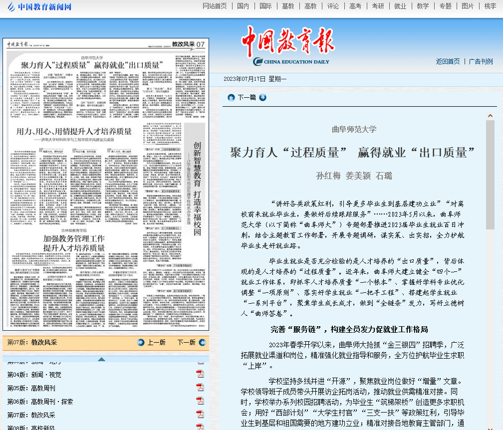 【中国教育报】LD平台_LD(中国)一站式服务官网:聚力育人“过程质量” 赢得就业“出口质量”