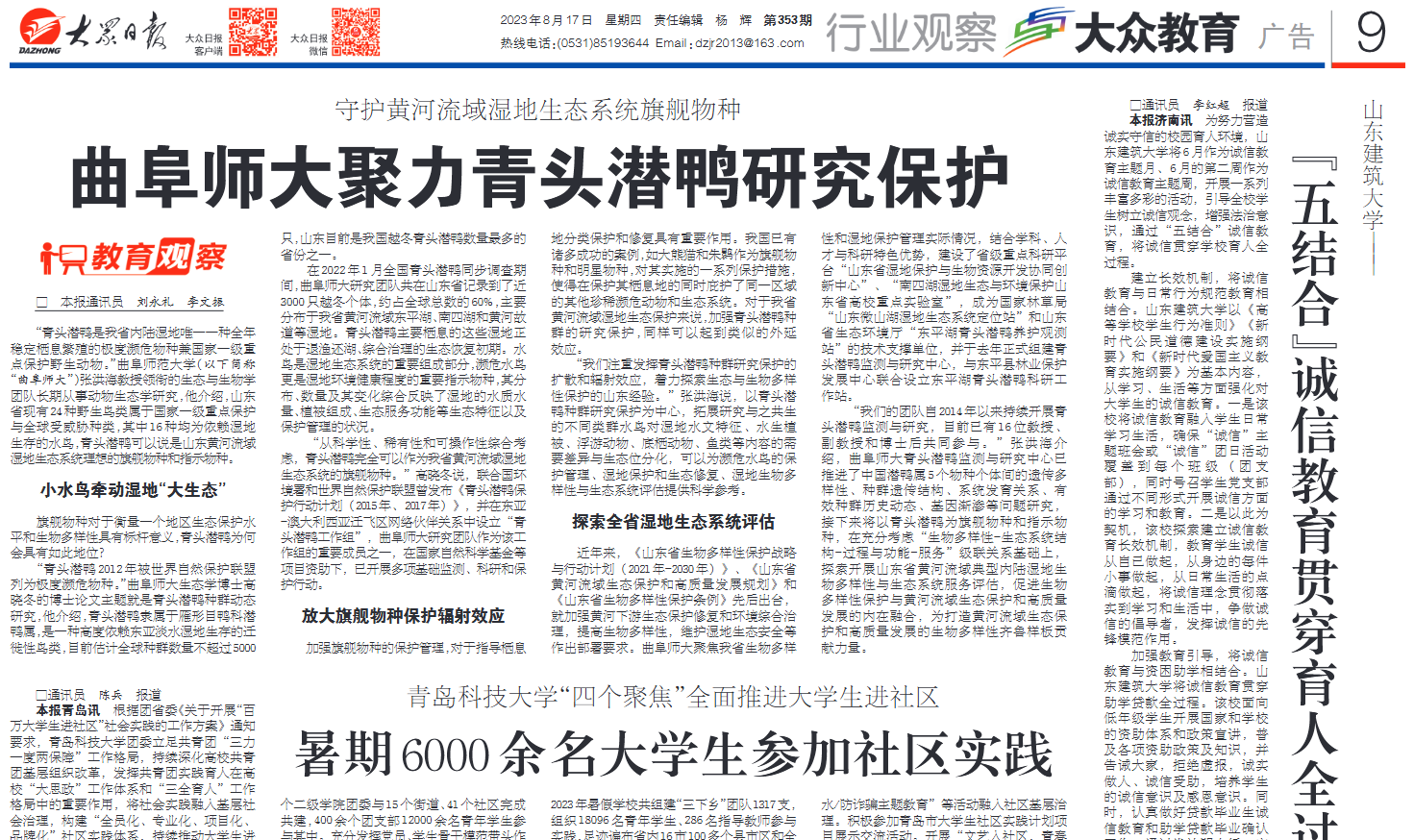 报道链接:http://paper.dzwww.com/dzrb/PDF/20230817/09.pdf
