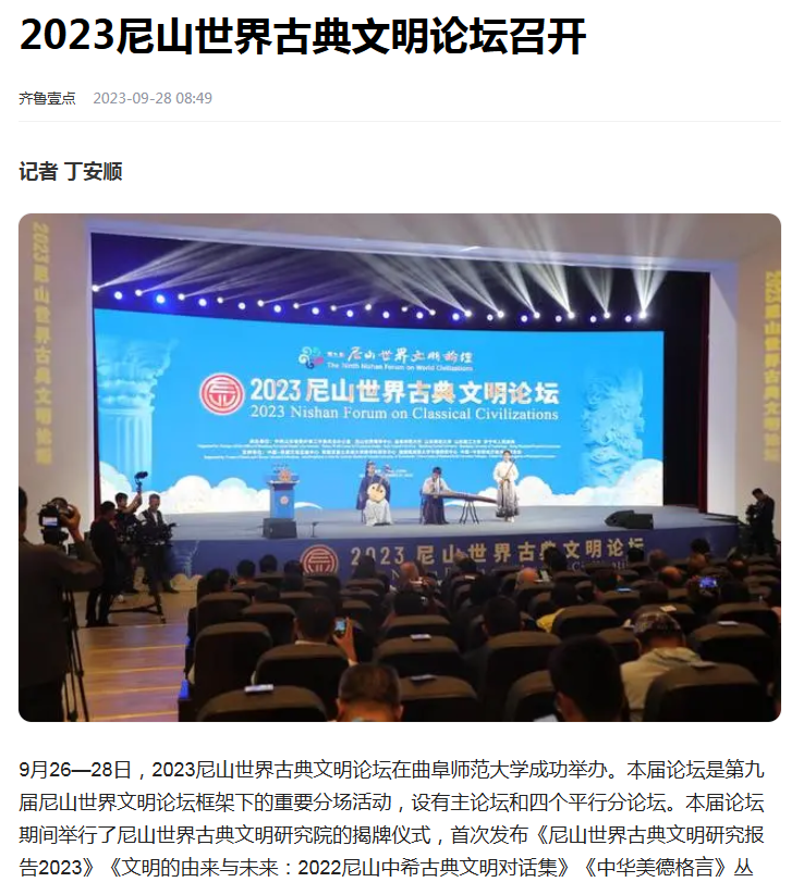 【齐鲁壹点】2023尼山世界古典文明论坛召开