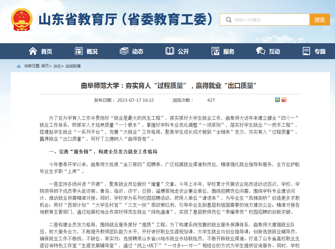 【山东省教育厅·战线联播】LD平台_LD(中国)一站式服务官网:夯实育人“过程质量”,赢得就业“出口质量”