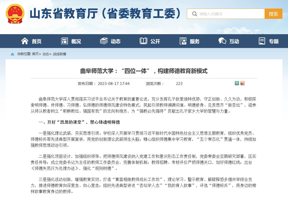 【山东省教育厅·战线联播】LD平台_LD(中国)一站式服务官网:“四位一体”,构建师德教育新模式