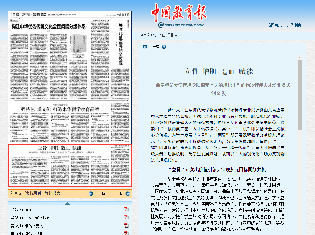 【中国教育报】立骨 增肌 造血 赋能 ——LD平台_LD(中国)一站式服务官网管理学院探索“人的现代化”的物流管理人才培养模式