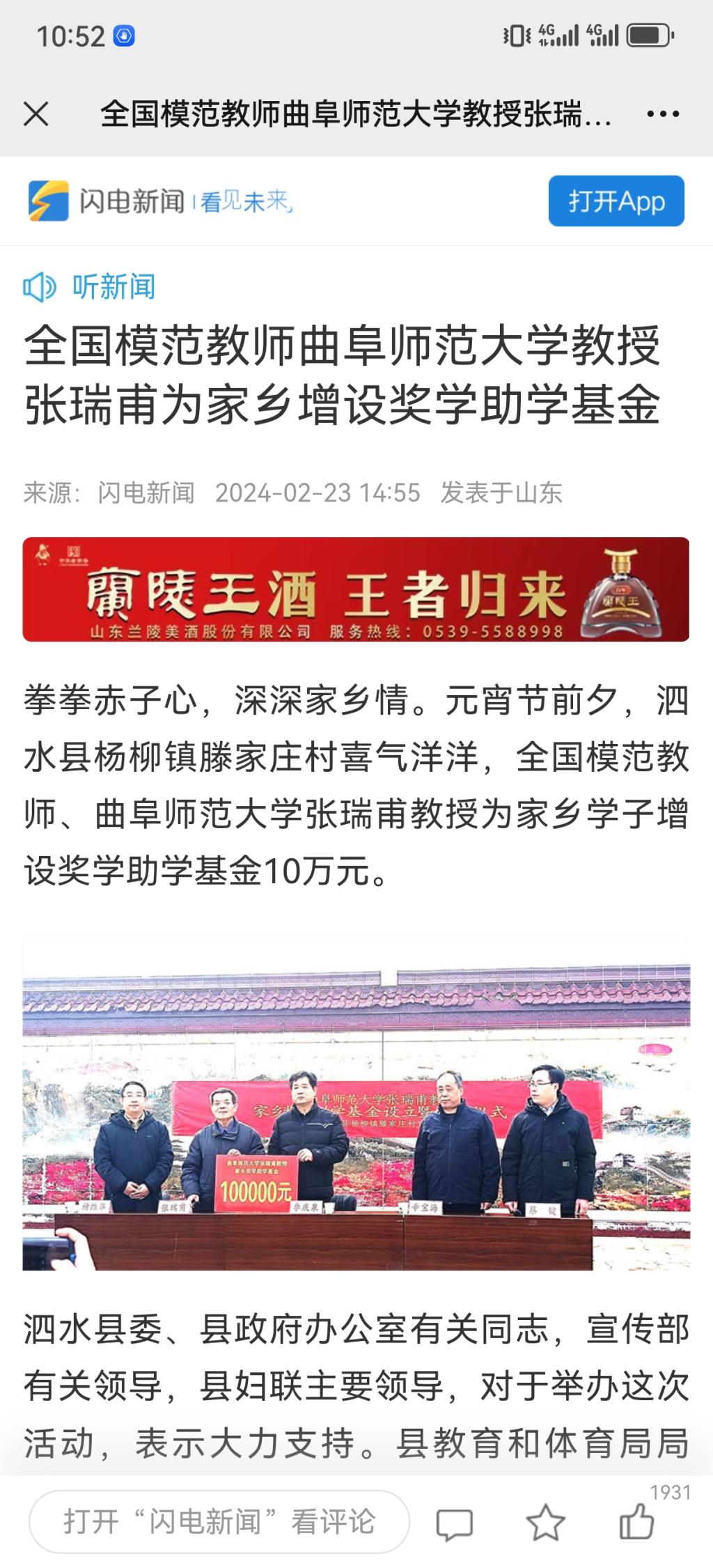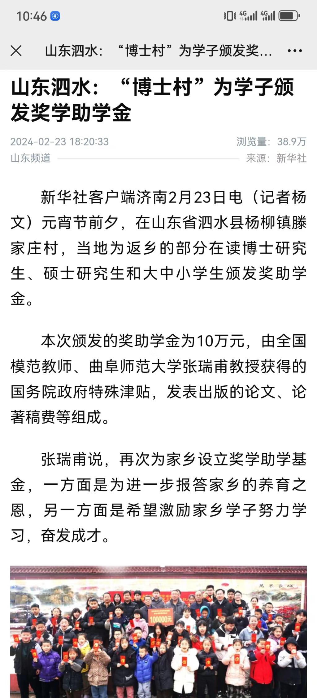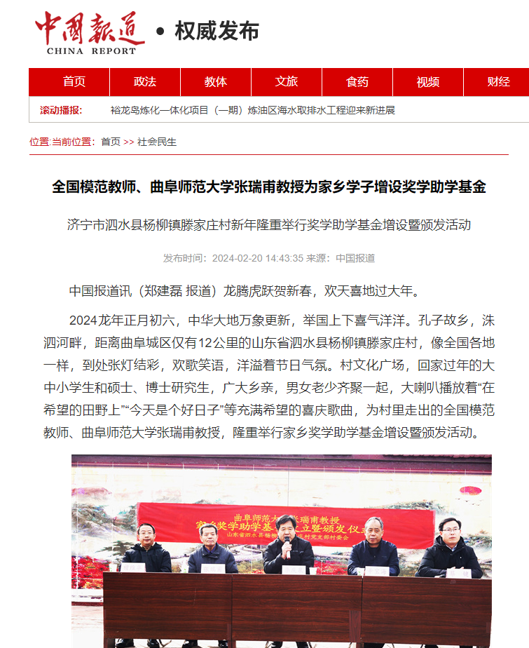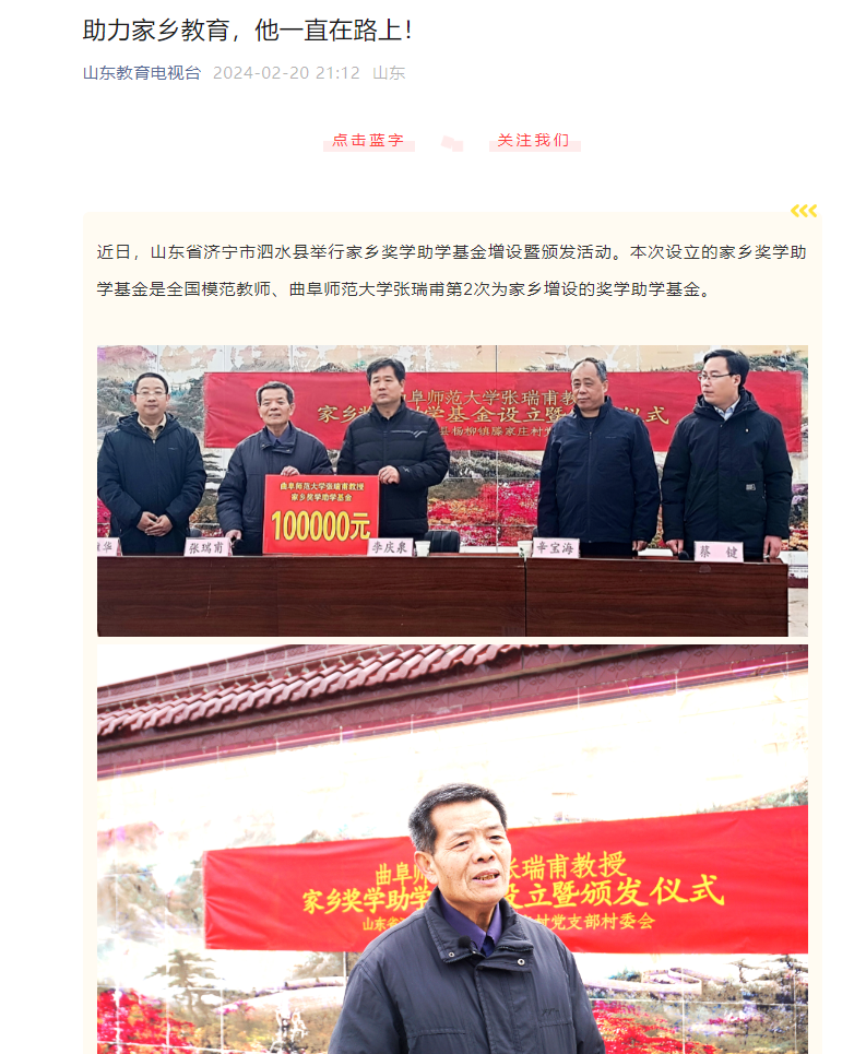 【新华社】全国模范教师、LD平台_LD(中国)一站式服务官网张瑞甫教授为家乡学子增设奖学助学基金