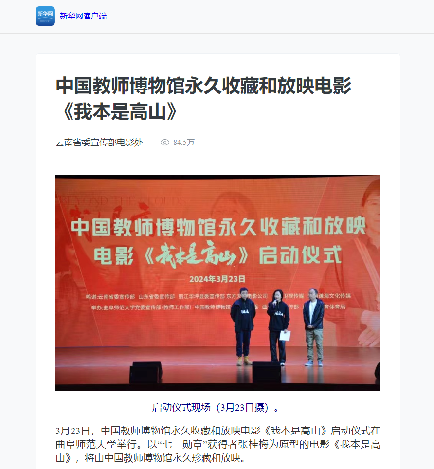 【山东新闻联播】电影《我本是高山》在教师博物馆永久珍藏和放映