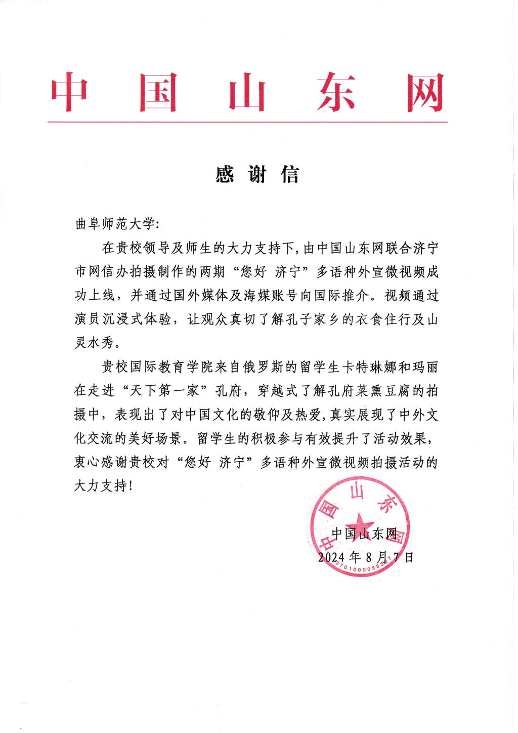 【中国山东网】曲阜师大留学生参与双语外宣微纪录片录制