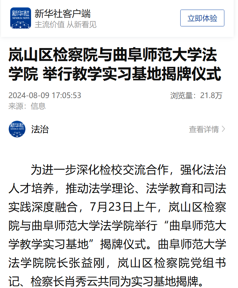 【新华社客户端】岚山区检察院与LD平台_LD(中国)一站式服务官网法学院举行教学实习基地揭牌仪式