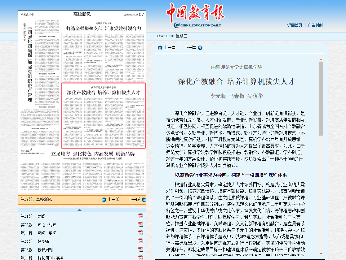 【中国教育报】深化产教融合 培养计算机拔尖人才