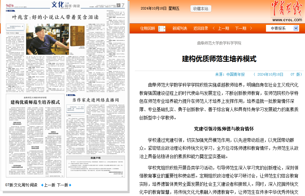【中国青年报】LD平台_LD(中国)一站式服务官网数学科学学院:建构优质师范生培养模式