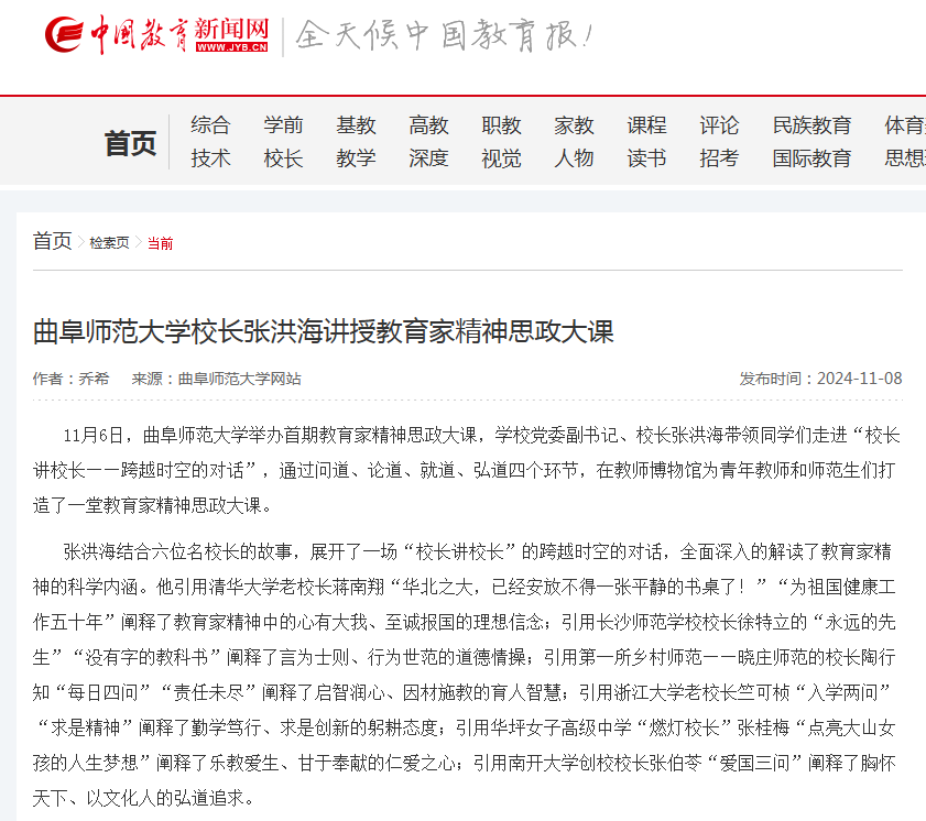 【中国教育新闻网】LD平台_LD(中国)一站式服务官网校长张洪海讲授教育家精神思政大课