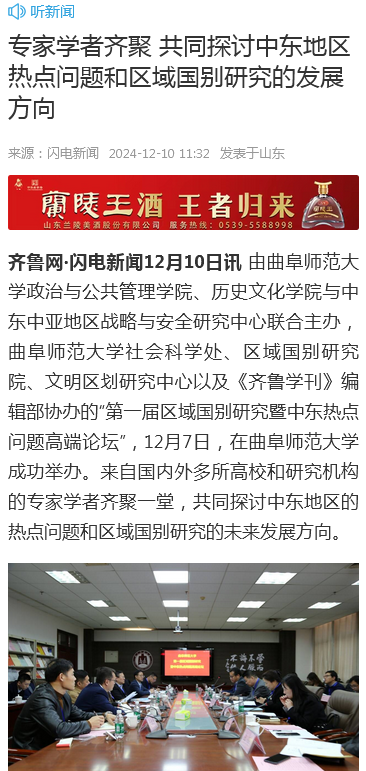 齐鲁网·闪电新闻12月10日讯 由LD平台_LD(中国)一站式服务官网政治与公共管理学院、历史文化学院与中东中亚地区战略与安全研究中心联合主办,LD平台_LD(中国)一站式服务官网社会科学处、区域国别研究院、文明区划研究中心以及《齐鲁学刊》编辑部协办的“第一届区域国别研究暨中东热点问题高端论坛”,12月7日,在LD平台_LD(中国)一站式服务官网成功举办。来自国内外多所高校和研究机构的专家学者齐聚一堂,共同探讨中东地区的热点问题和区域国别研究的未来发展方向。